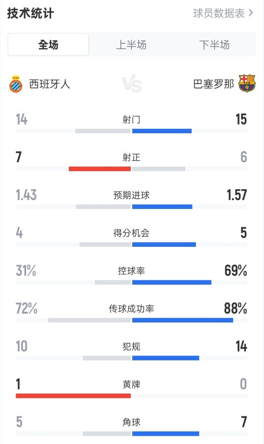全场比赛数据如下: